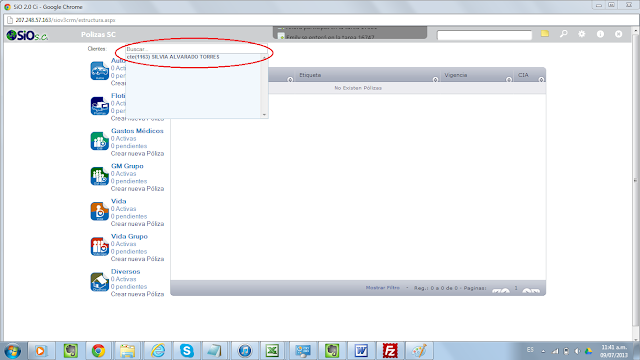 2) Tecleas el nombre del cliente que tiene la póliza del recibo que buscas: