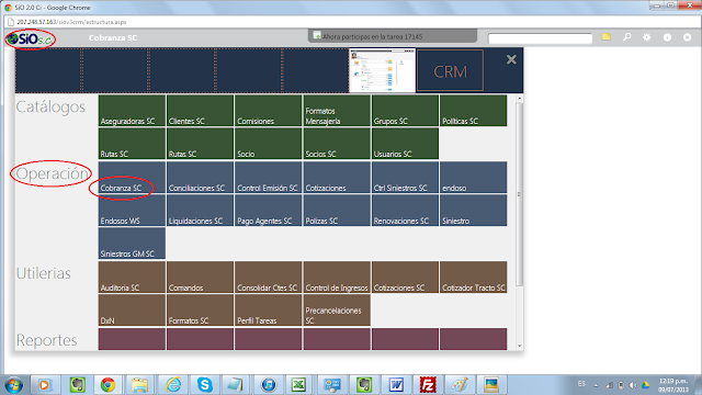 La otra forma es por medio del modulo de Cobranza que se encuentra en Operación: